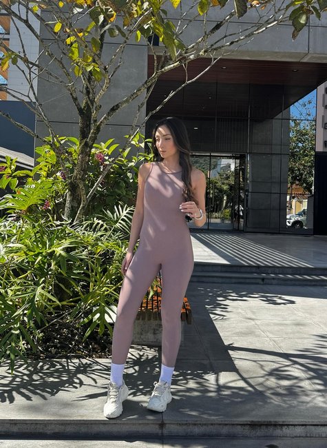 Características do Macacão Frente Fechada Canelado Avelã