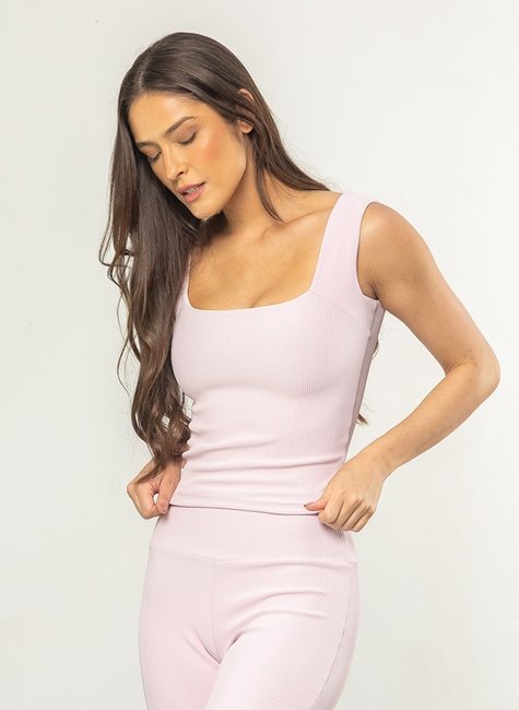 Características da Regata Cropped Firme Decote Quadrado Rosa Blush