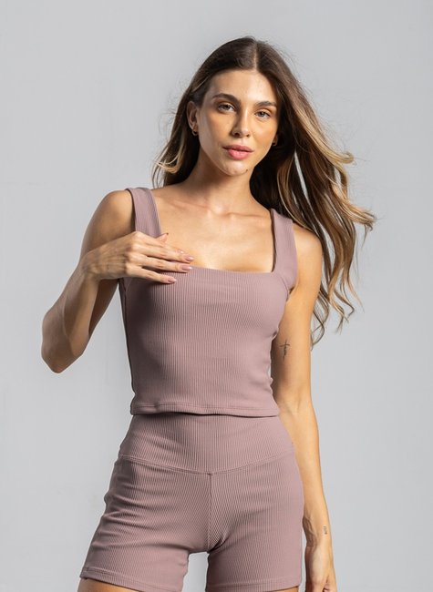 Características da Regata Cropped Firme Decote Quadrado Avelã