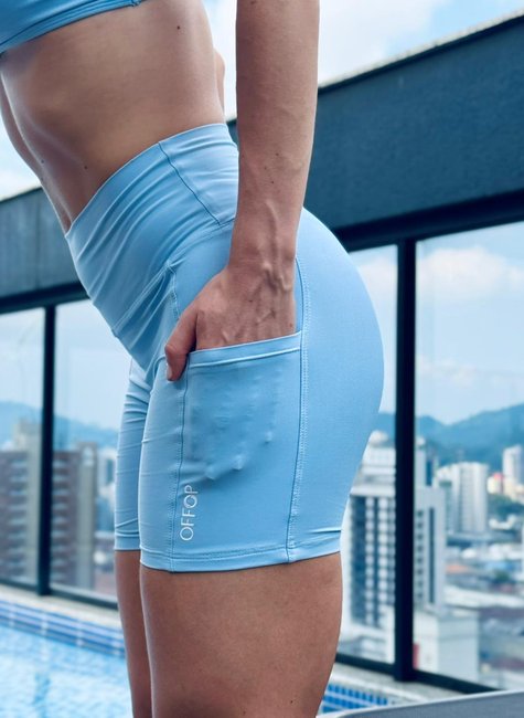 Shorts Médio Bolso Azul: firme na medida certa, confortável e versátil para treinos e looks do dia a dia.