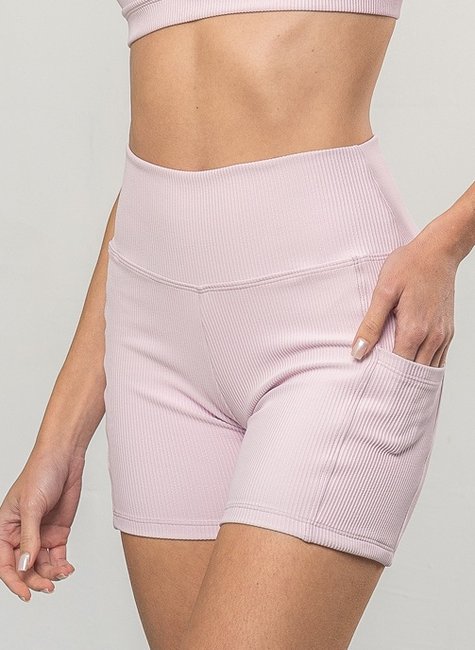 Shorts Medio Bolso Rosa Blush Canelado