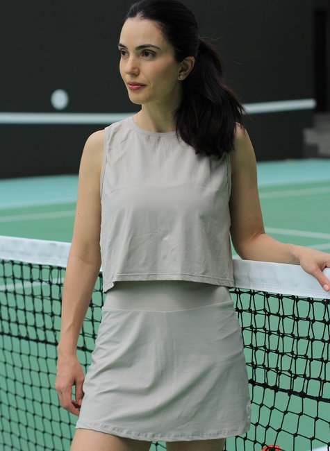 Treinos e esportes: combine com a Regata Abertura Lateral Bege para um visual mais delicado. Ambas as opções são ótimas para a academia, caminhadas ou esportes de raquete.